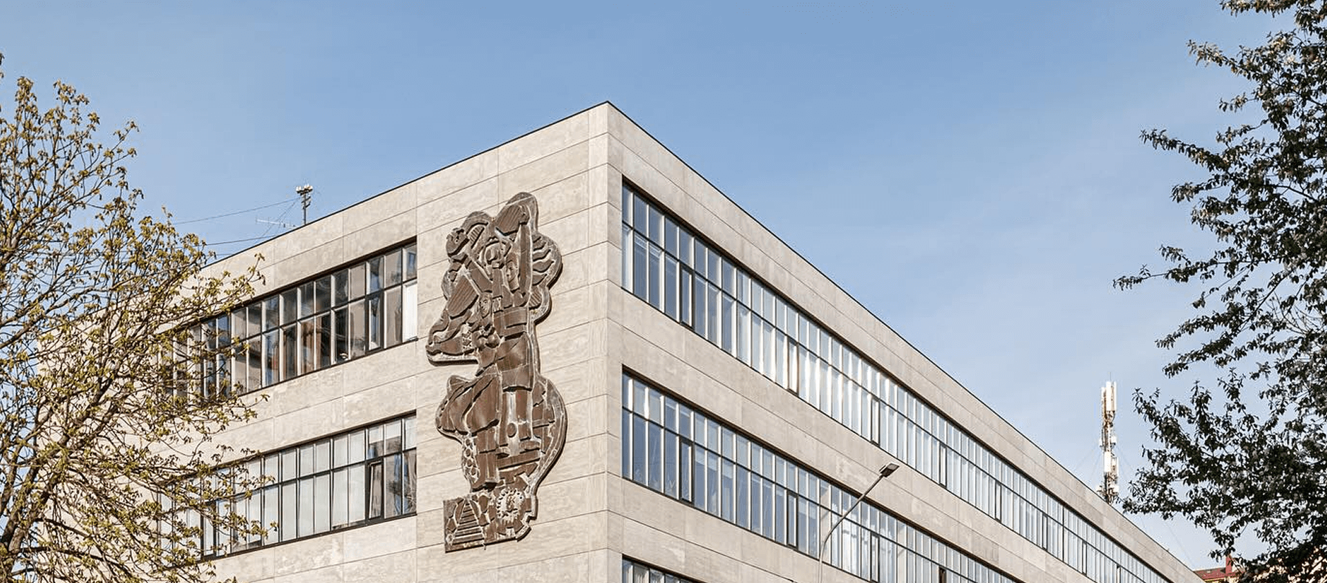Барельєф «Технічний прогрес на Прикарпатті», 1978 р. На скульптуру витратили 1.5 тон металу: 600 кг листової латуні товщиною 0,8 мм, 300 кг свинцевого опою та чорний метал як основу. Семиметровий латунний барельєф упродовж 40 років прикрашав стіну одного з корпусів заводу. Це мистецька робота франківського художника Михайла Стецика, який у 70-тих роках керував «Бюро естетики» на приладобудівному заводі «Промприлад». У 2019 році пам’ятку відреставрували, оновивши систему кріплень.