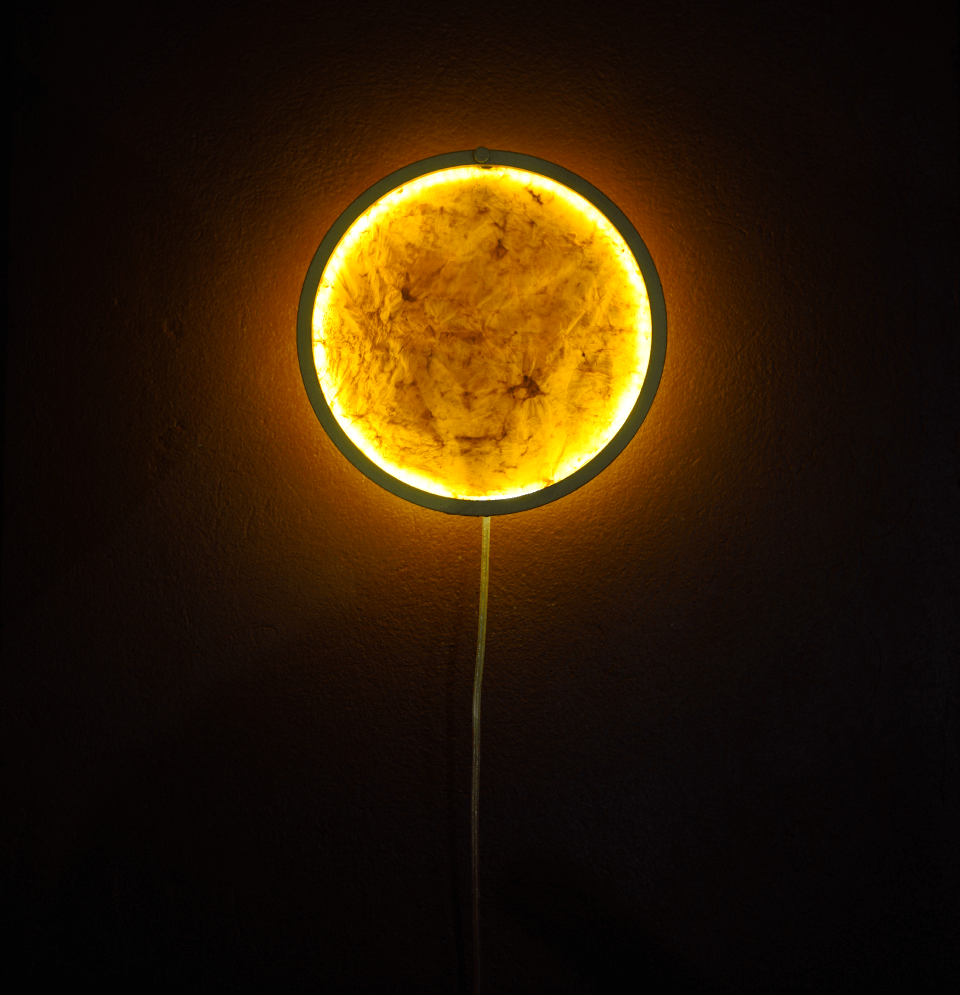 Для створення світильника використали новий, створений у лабораторних умовах матеріал з комбучі. Цей матеріал створила команда урбаністичної лабораторії МЕТАЛАБ. Він є екологічною альтернативою пластику та шкірі тваринного походження, має чудові характеристики з погляду дизайну, є варіабельним для використання в різних дизайнерських проєктах. Команда вдосконалює технологію виготовлення для створення серійних партій матеріалу.